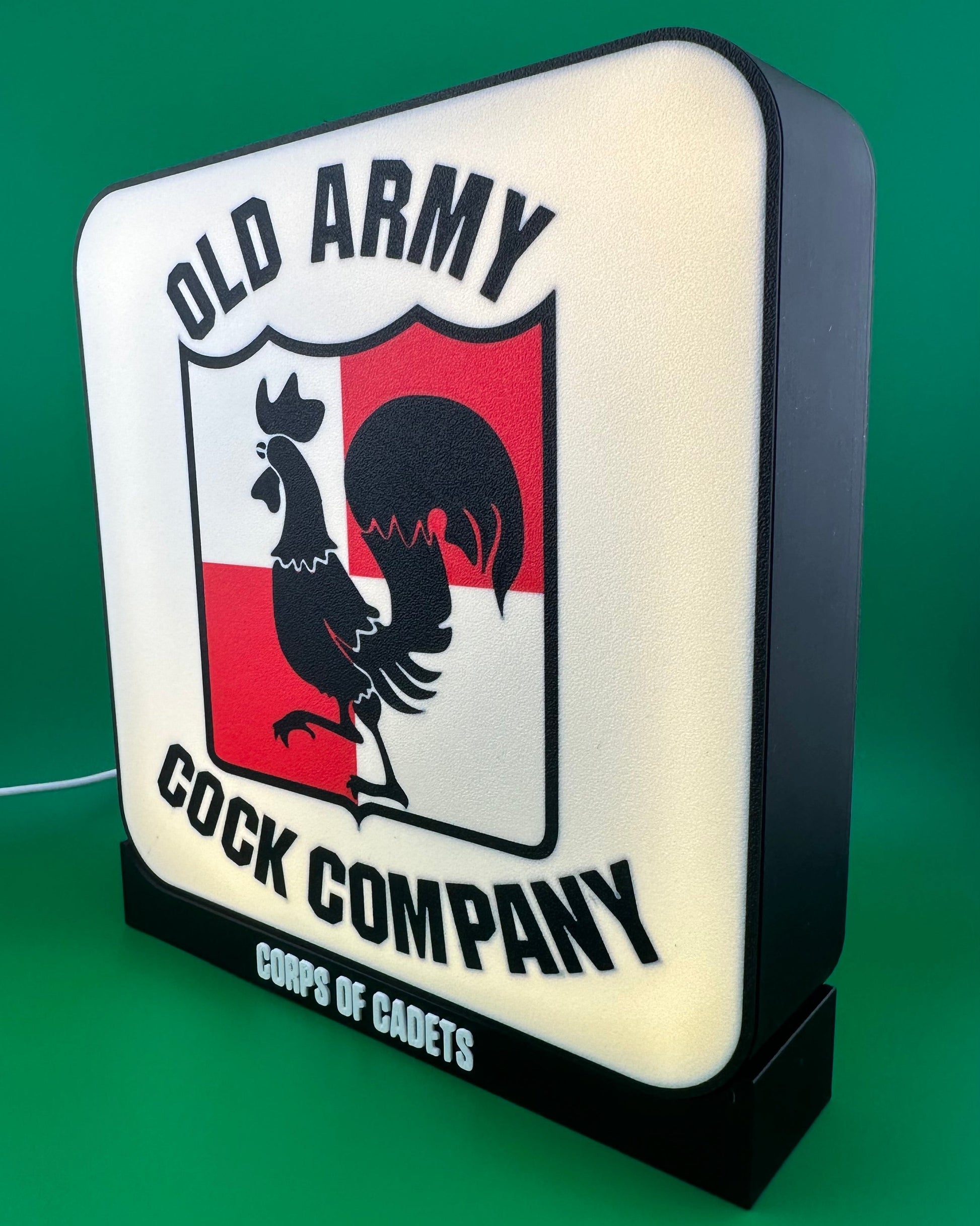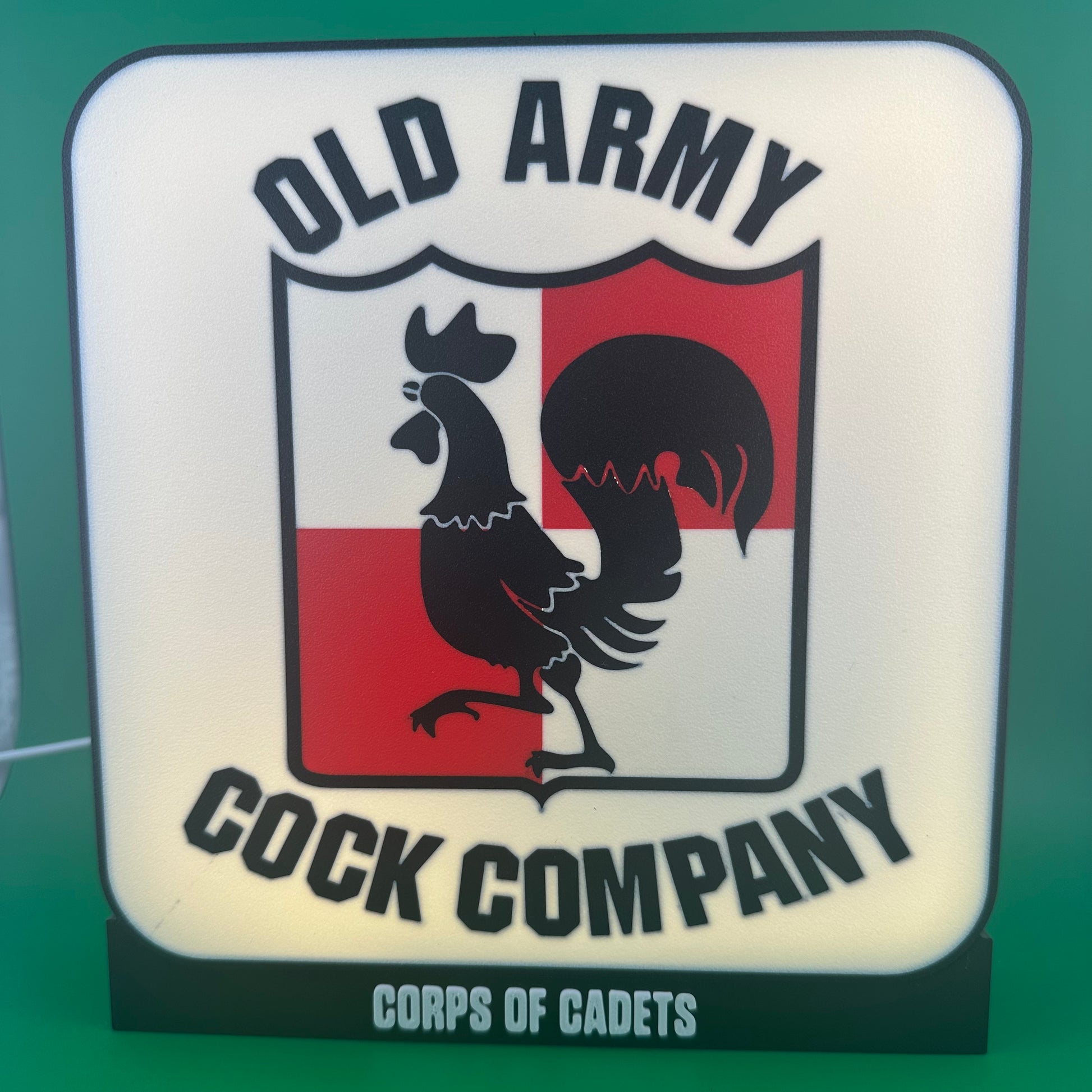Bring the Spirit of Aggieland to life with a handcrafted Corps of Cadets backlit insignia glowbox. Designed with precision 3D printing and illuminated by adjustable LED lighting, these custom glowboxes showcase outfit pride in a bold and timeless way.