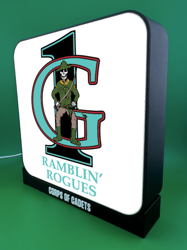 Bring the Spirit of Aggieland to life with a handcrafted Corps of Cadets backlit insignia glowbox. Designed with precision 3D printing and illuminated by adjustable LED lighting, these custom glowboxes showcase outfit pride in a bold and timeless way.