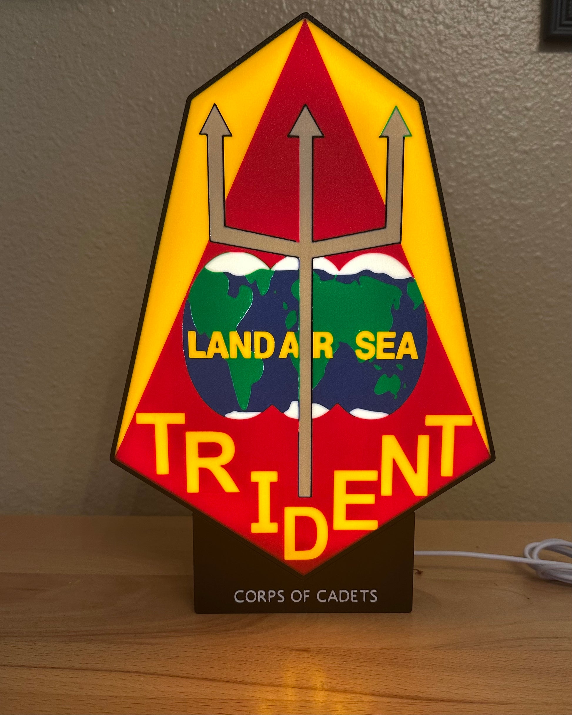 Bring the Spirit of Aggieland to life with a handcrafted Corps of Cadets backlit insignia glowbox. Designed with precision 3D printing and illuminated by adjustable LED lighting, these custom glowboxes showcase outfit pride in a bold and timeless way.