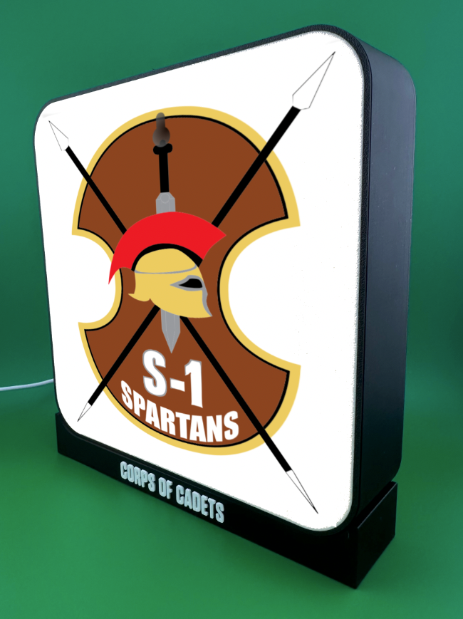 Bring the Spirit of Aggieland to life with a handcrafted Corps of Cadets backlit insignia glowbox. Designed with precision 3D printing and illuminated by adjustable LED lighting, these custom glowboxes showcase outfit pride in a bold and timeless way.