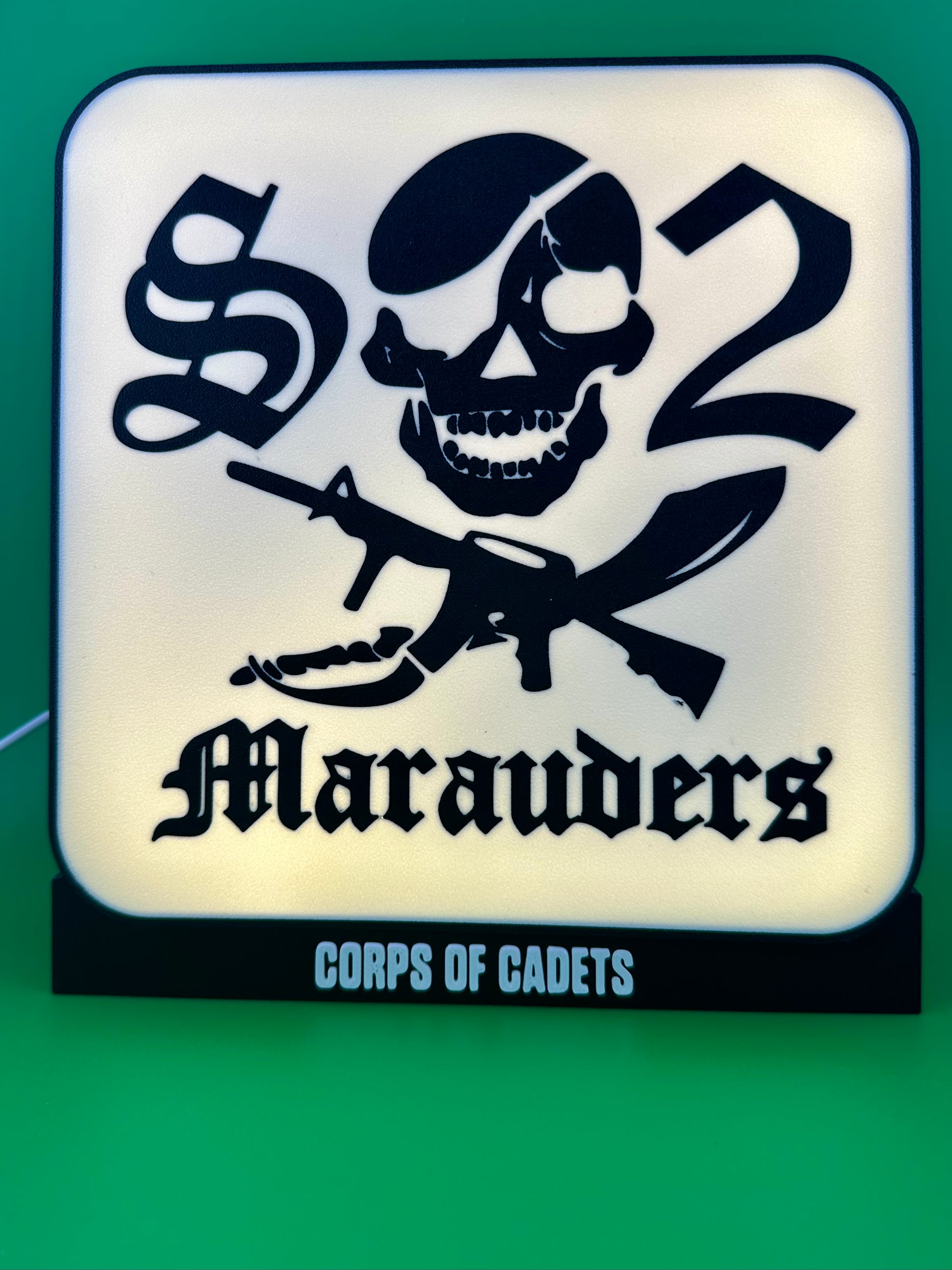 Bring the Spirit of Aggieland to life with a handcrafted Corps of Cadets backlit insignia glowbox. Designed with precision 3D printing and illuminated by adjustable LED lighting, these custom glowboxes showcase outfit pride in a bold and timeless way.