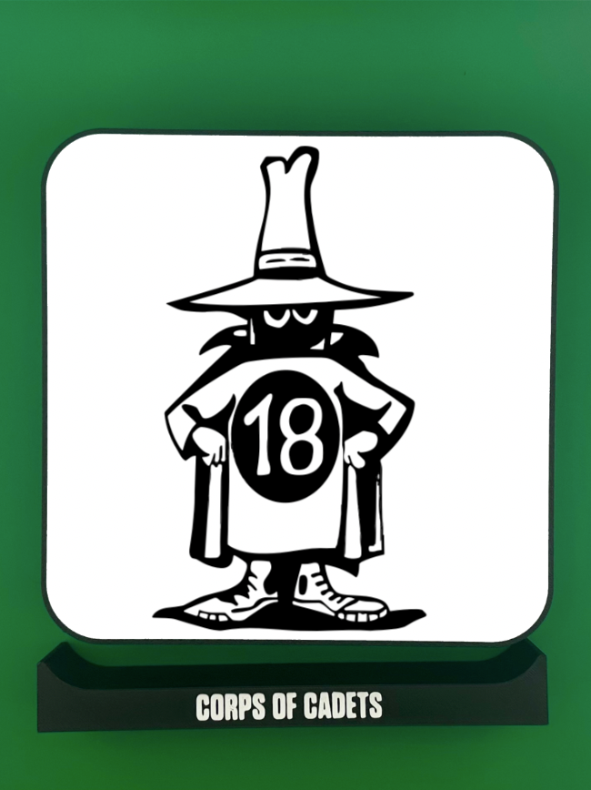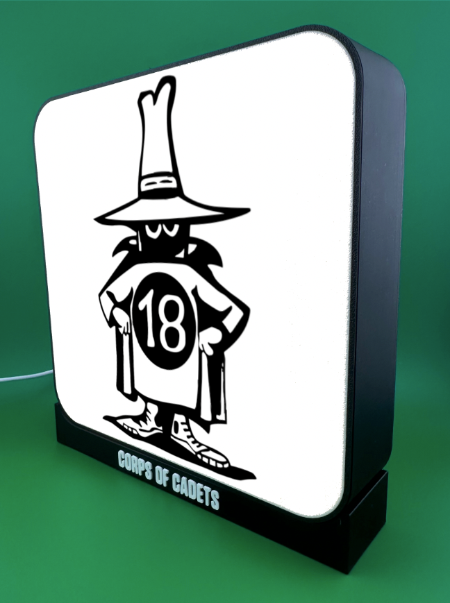 Bring the Spirit of Aggieland to life with a handcrafted Corps of Cadets backlit insignia glowbox. Designed with precision 3D printing and illuminated by adjustable LED lighting, these custom glowboxes showcase outfit pride in a bold and timeless way.