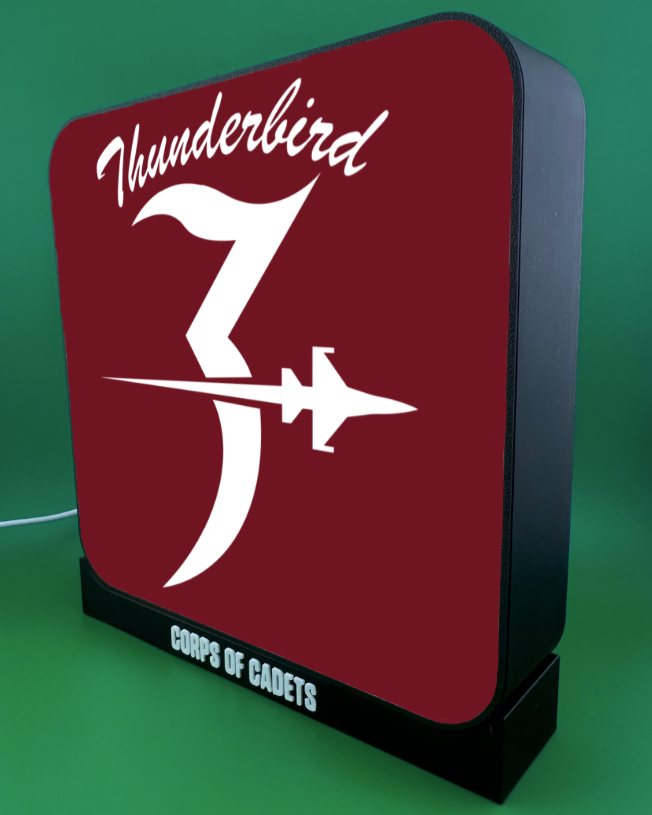 Bring the Spirit of Aggieland to life with a handcrafted Corps of Cadets backlit insignia glowbox. Designed with precision 3D printing and illuminated by adjustable LED lighting, these custom glowboxes showcase outfit pride in a bold and timeless way.